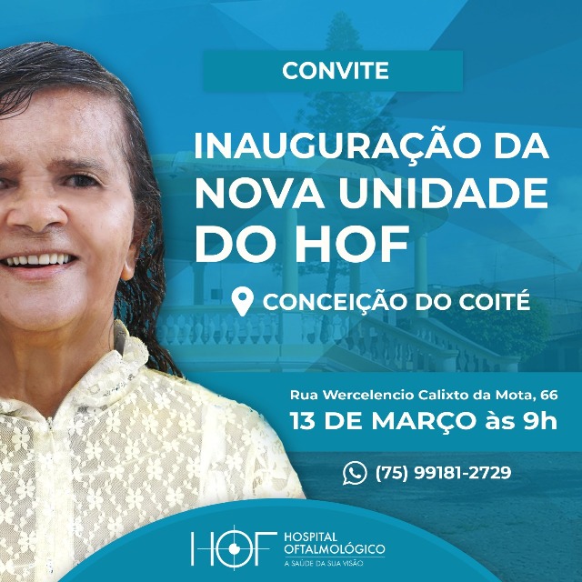 Com duas unidades já em pleno funcionamento, em Araci e Serrinha, o HOF – Hospital Oftalmológico ampliará suas atividades na próxima sexta-feira, 13, quando será inaugurada mais uma unidade, dessa vez no município de Conceição do Coité.