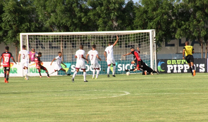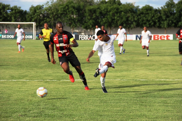 O Jacuipense saiu rápido e tinha facilidade de entrar na área do Vitória, neste lance Thiaguinho recebeu pela esquerda e chutou rasteiro, mas João Pedro bem colocado defendeu