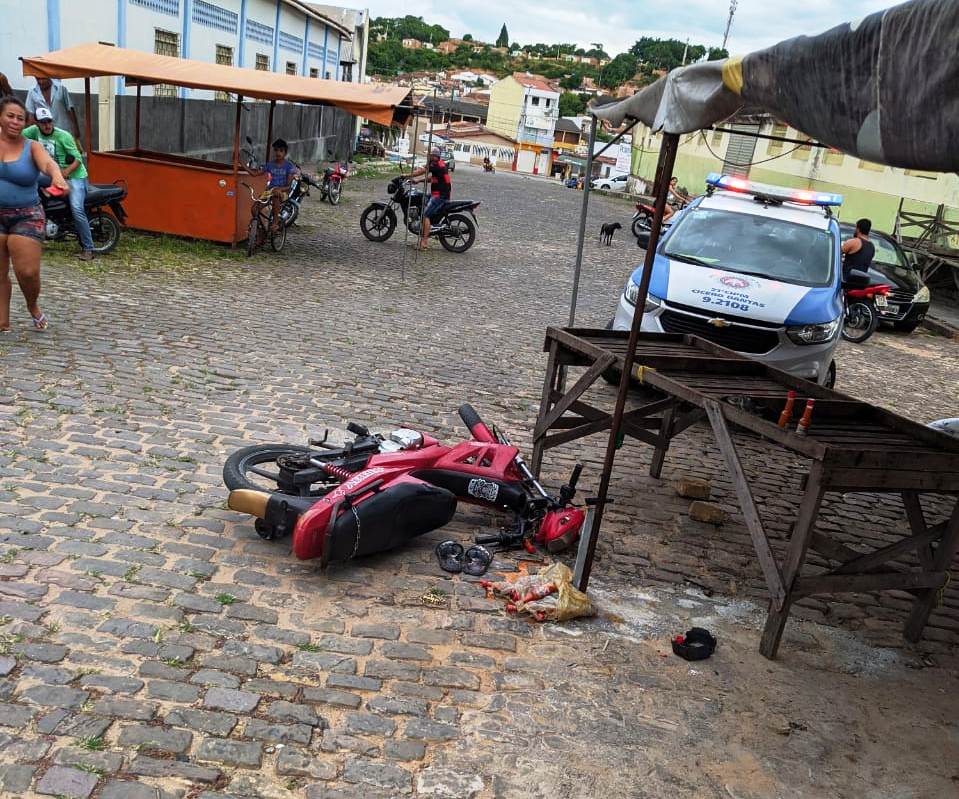 Ainda de acordo com a PM, no local, foi constatado que a vítima bateu a moto contra um ferro de uma barraca da feira livre e caiu.
