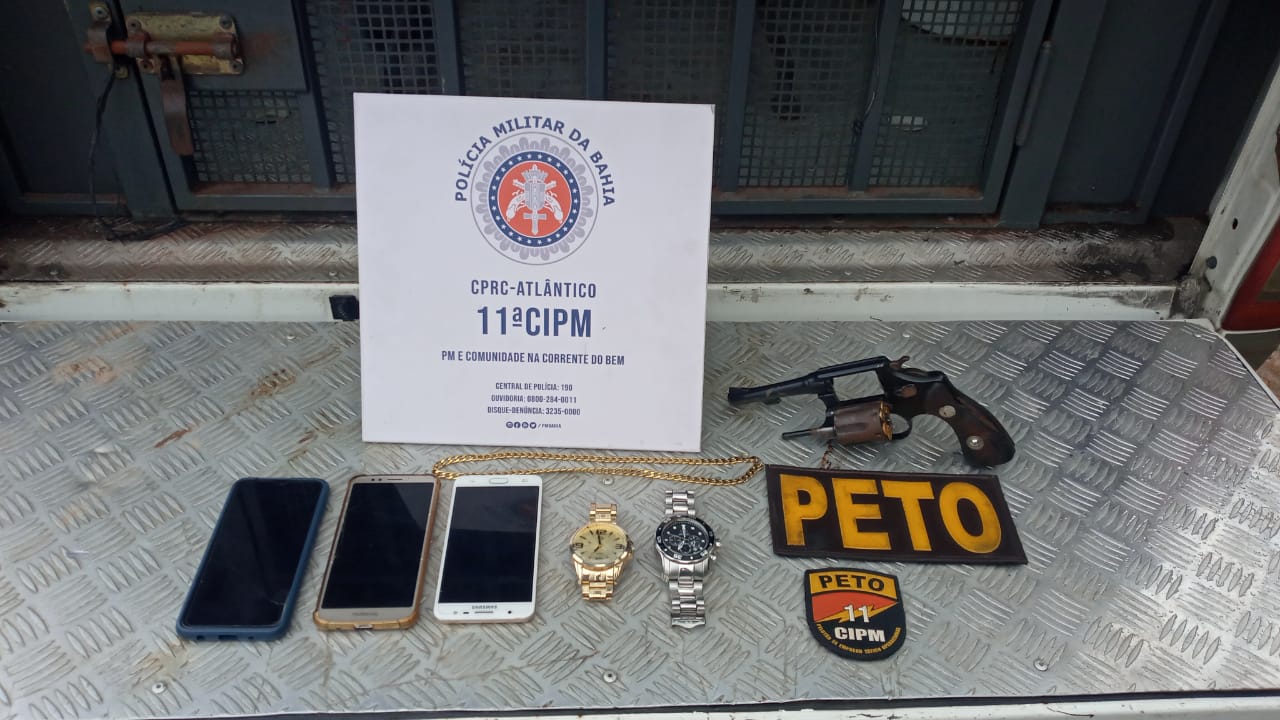 Um homem com 11 passagens pela polícia por tráfico de drogas, roubo de veículo, roubo e furto foi preso por policiais da 11ª Companhia Independente de Polícia Militar (CIPM/Barra), na manhã desta terça-feira (12), após praticar mais um assalto, desta vez na Avenida Oceânica com um veículo Honda WR-V, de placa QFD 0513, também roubado. Ele estava de posse de uma arma calibre 38.