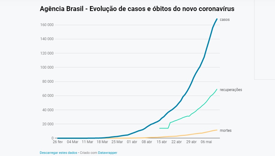 Covid-19: Brasil tem 168 mil casos confirmados e 11,5 mil mortes