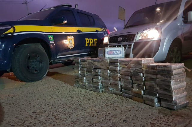 A Polícia Rodoviária Federal (PRF) apreendeu na madrugada desta terça-feira (12), aproximadamente 109 kg de cocaína, embaladas em tabletes, que estavam escondidos no banco traseiro do veículo Fiat/Doblo Essence, com placas de Santo Amaro (BA). Dois homens e uma mulher foram presos.