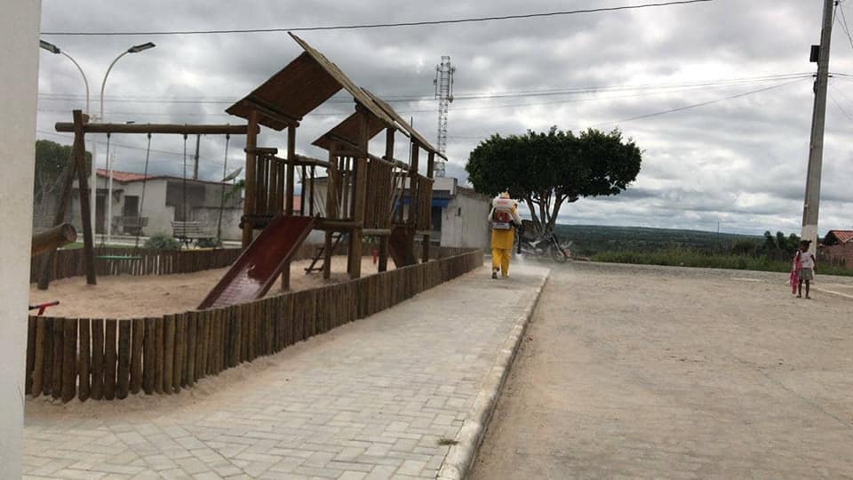 Agentes de endemias aplicaram o produto nas ruas, praça e espaços públicos da comunidade.