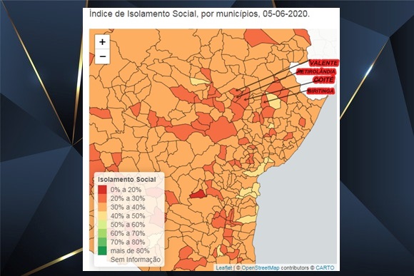 Foi divulgado na noite deste sábado, 06, no site da Superintendência de Estudos Econômicos e Sociais – SEI a taxa de isolamento social dos 417 municípios baianos, referente ao movimento das cidades de sexta-feira, 05.