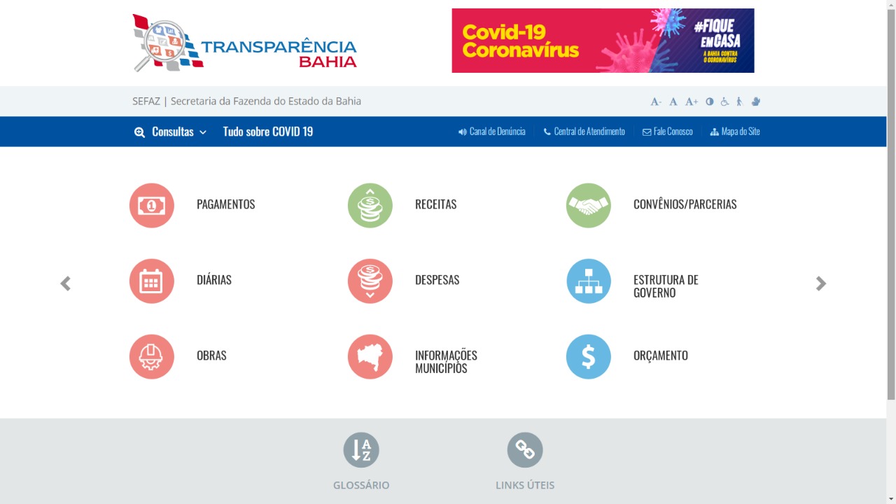 O auditor geral do Estado, Luis Augusto Rocha, acrescenta que o novo portal Transparência Bahia também dá acesso a muitas outras informações relativas à pandemia produzidos pelos diversos órgãos do Estado, a exemplo de notícias, contratações e doações no âmbito da Secretaria da Saúde, leis e decretos e boletins epidemiológicos.