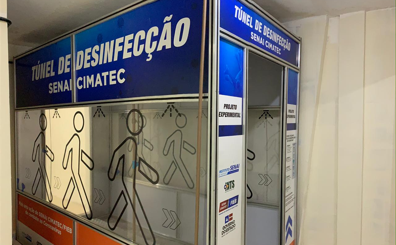 O túnel do Senai Cimatec possui formato de um corredor de 2,5 metros, pelo qual o profissional de saúde passa ao final do seu expediente, antes da retirada do EPI, para desinfecção. O equipamento possui estrutura de alumínio, com tubulação de PVC, uma bomba de alta pressão e bicos aspersores que fazem o processo de nebulização. O desinfetante utilizado (hipoclorito) já é amplamente recomendado e utilizado, por décadas, para uso na desinfecção de superfícies de ambientes hospitalares e domiciliares, pela Organização Mundial de Saúde (OMS), Agência Nacional de Vigilância Sanitária (Anvisa) e órgãos internacionais de saúde, inclusive com eficácia comprovada para o novo Coronavírus.