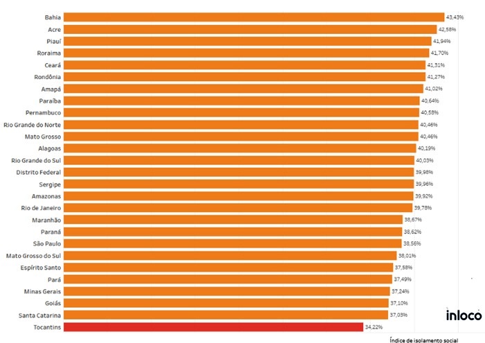 Mesmo longe do Ideal que é 70% para o índice de isolamento social de acordo com a Organização Mundial de Saúde (OMS), a Bahia alcançou na quinta-feira, 09, cujo resultado foi apresentado nesta sexta-feira,10, 43.43% e ‘entre os piores foi o melhor’, ficando em primeiro lugar.