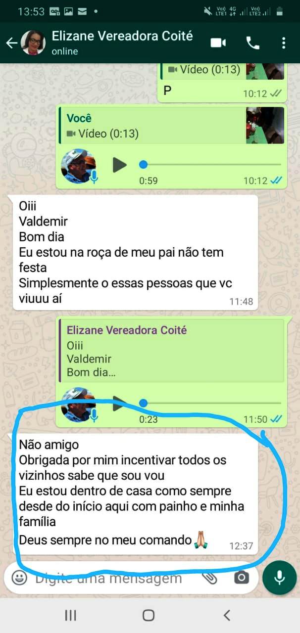 O repórter Valdemi de Assis ao receber o vídeo com a sugestão de matéria agiu da forma como realmente um jornalista, manteve contato via aúdio com a vereadora para entender o episódio e a mesma respondeu com mensagem de texto: