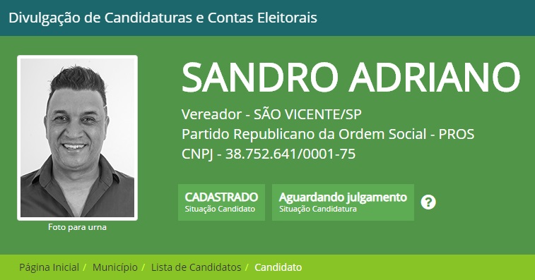 E através da música Sandro quer mostrar seu talento também na política e vai levar o nome do irmão também na campanha e na urna, já que o nome registrado foi Sandro Adriano, vai concorrer a uma vaga de vereador pelo Partido Republicano da Ordem Social – PROS.