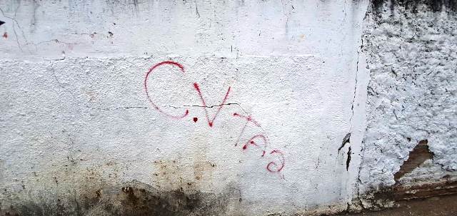 “Chamou a nossa atenção o fato de eles estarem na mesma posição a nível corporal. Parece-me que eles foram colocados de joelhos e, em ato subsequente, houve a deflagração dos disparos de arma de fogo. Dois precisamente em Itamar, um na perna e um na cabeça, e o outro na cabeça também. A gente percebe que há uma identificação local de facção criminosa, existem aqui as iniciais (pichada na parede conforme foto abaixo). Uma pessoa de bicicleta teria mandado este carro parar, feito com que os ocupantes do veículo descessem, ficassem de joelhos e efetuado os disparos. Não temos informações de nenhum outro autor além desta pessoa. O carro tem placa do Maranhão, e há alguns documentos de leilão no interior veículo”, informou a delegada ao Acorda Cidade.