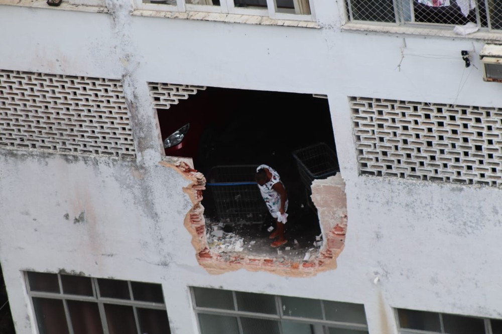 A síndica do prédio vizinho contou que a vítima manobrava o veiculo, quando perdeu o controle da direção, quebrou uma parede do prédio e caiu de uma altura de cerca de cinco metros.