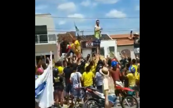 O homem que atira cédulas para o público é apoiador do grupo que venceu as eleições no domingo (15), elegendo Jilson Cardoso (PSD) que ficou à frente de Dr. Orminda (PSC), segunda colocada. Na contagem dos sufrágios, Cardoso teve 49,77% dos votos válidos [5.086] contra 48,24% [4.929] da adversária.