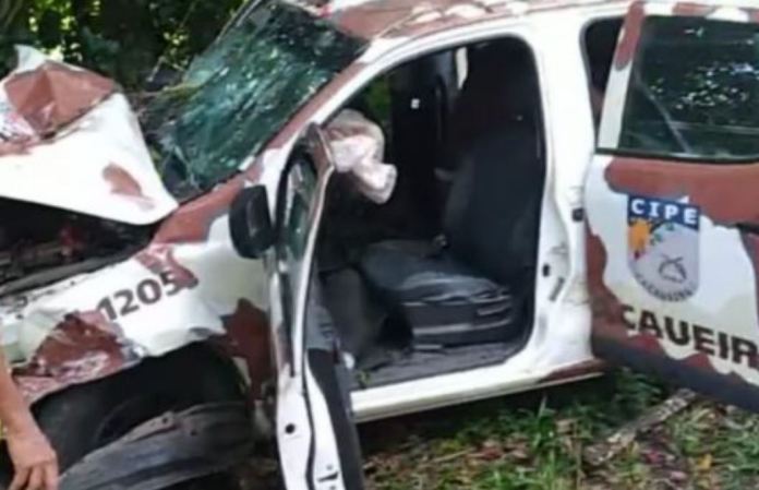 Um policial militar morreu após uma batida entre uma viatura da Cipe Cacaueira e um carro, na tarde de domingo (8), na BR-415, trecho na altura de Ilhéus, cidade no sul da Bahia. Segundo a Polícia Rodoviária Federal (PRF), o acidente, do tipo frontal, aconteceu por volta das 13h30, no Km 28. Outras quatro pessoas, três policiais e o motorista do outro veículo, ficaram feridas.
