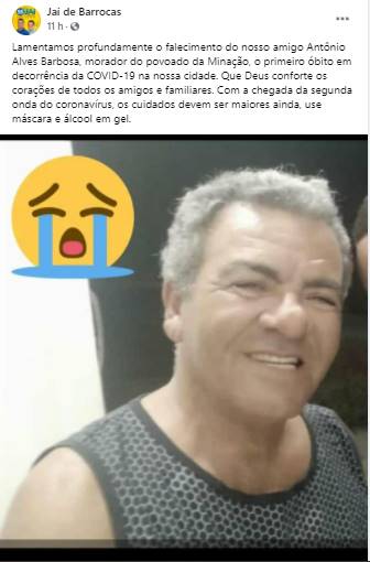 O boletim não informou nenhum detalhe sobre as vítima, a exemplo de sexo, idade, residência, comorbidades, no entanto, o prefeito José Jailson Ferreira (Jai) em rede social ao lamentar a morte identificou como sendo de Antonio Alves Barbosa.