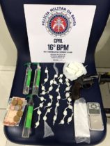 Foi apresentado na Delegacia de Polícia de Serrinha, o material aprendido na diligência.