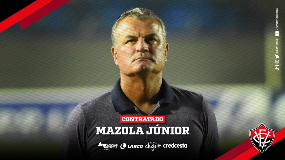 No Vitória, Mazola Júnior será o substituto de Eduardo Barroca, que deixou a Toca do Leão após aceitar convite para treinar o Botafogo, que briga para evitar o rebaixamento na Série A.