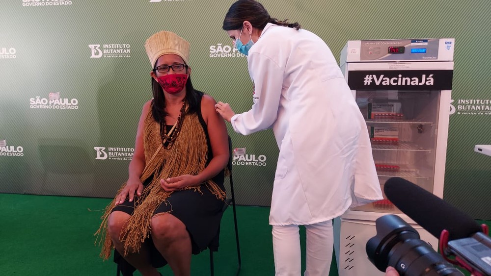 Primeira indígena e a segunda brasileira a ser vacinada contra a Covid-19 no Brasil, é da cidade de Euclides da Cunha, norte do estado da Bahia. Vanuzia Costa Santos, 50, da aldeia Massacará, é técnica de enfermagem e assistente social. Ela é moradora da aldeia multiétnica Filhos Dessa Terra, que fica na cidade de Guarulhos, Região Metropolitana de São Paulo.