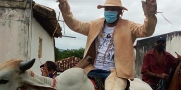 Prefeito é empossado depois de chegar a Câmara vestido de vaqueiro e montado em touro