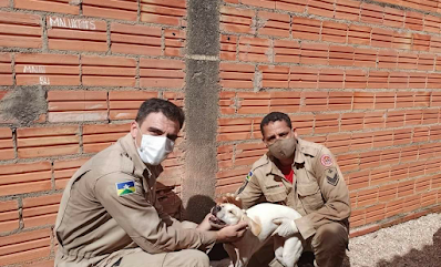 Em seguida, os militares pediram autorização aos proprietários da casa para abrirem um buraco no muro. Durante todo o trabalho, os três bombeiros que participavam do resgate tiveram o cuidado de proteger o animal para que o entulho não caísse sobre ele.