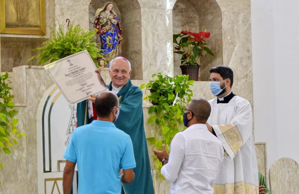 Devido a pandemia, a Catedral não estava cheia de pessoas, como de costume, mas estava carregada de momentos profundos e significativos. Começando pela presença de todo o clero, pela presença de dois bispos, Dom Hélio, coadjutor, e Dom Ettori Dotti, da Diocese de Naviraí, ordenado presbítero em Serrinha. Pela representação de lideranças que trouxerem consigo o afeto e gratidão dos seus irmãos.