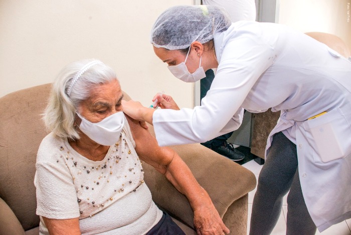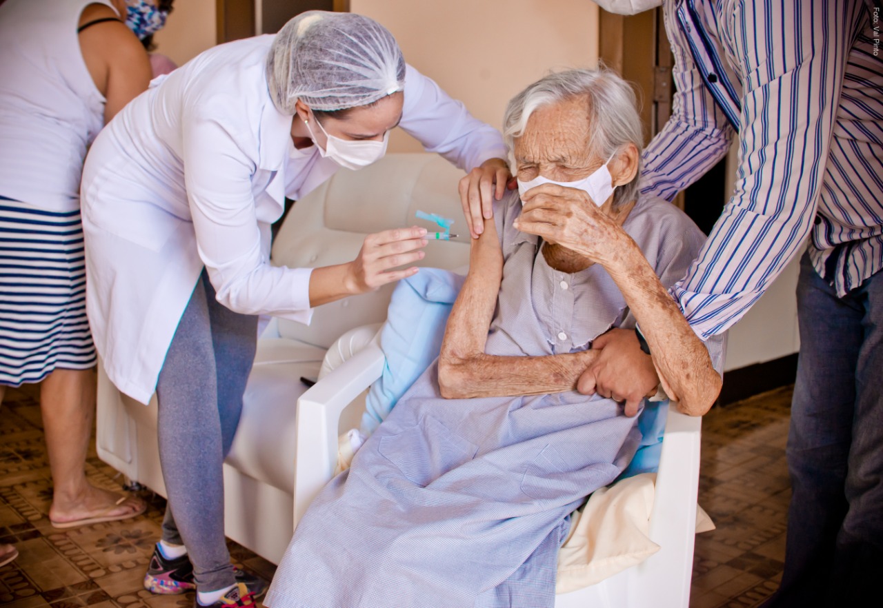 Dona Edith, como é conhecida na Rua Miguel Pinto, foi imunizada e não escondeu a alegria. Em seguida a equipe da Secretaria de Saúde se deslocou para vacinar a idosa Eugênia Sena da Silva, de 97 anos.