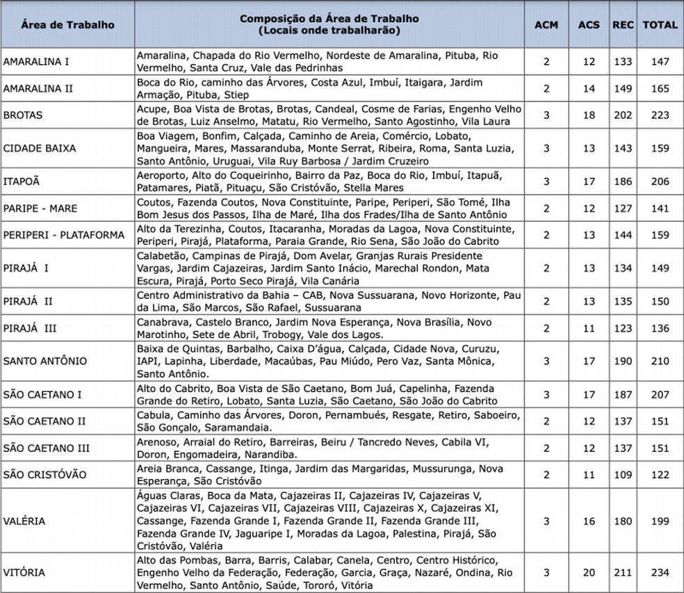 A capital baiana terá 17 áreas ao todo, entretanto o IBGE destaca que ser morador da área não é exigência para se inscrever nela. [Confira tabela abaixo]