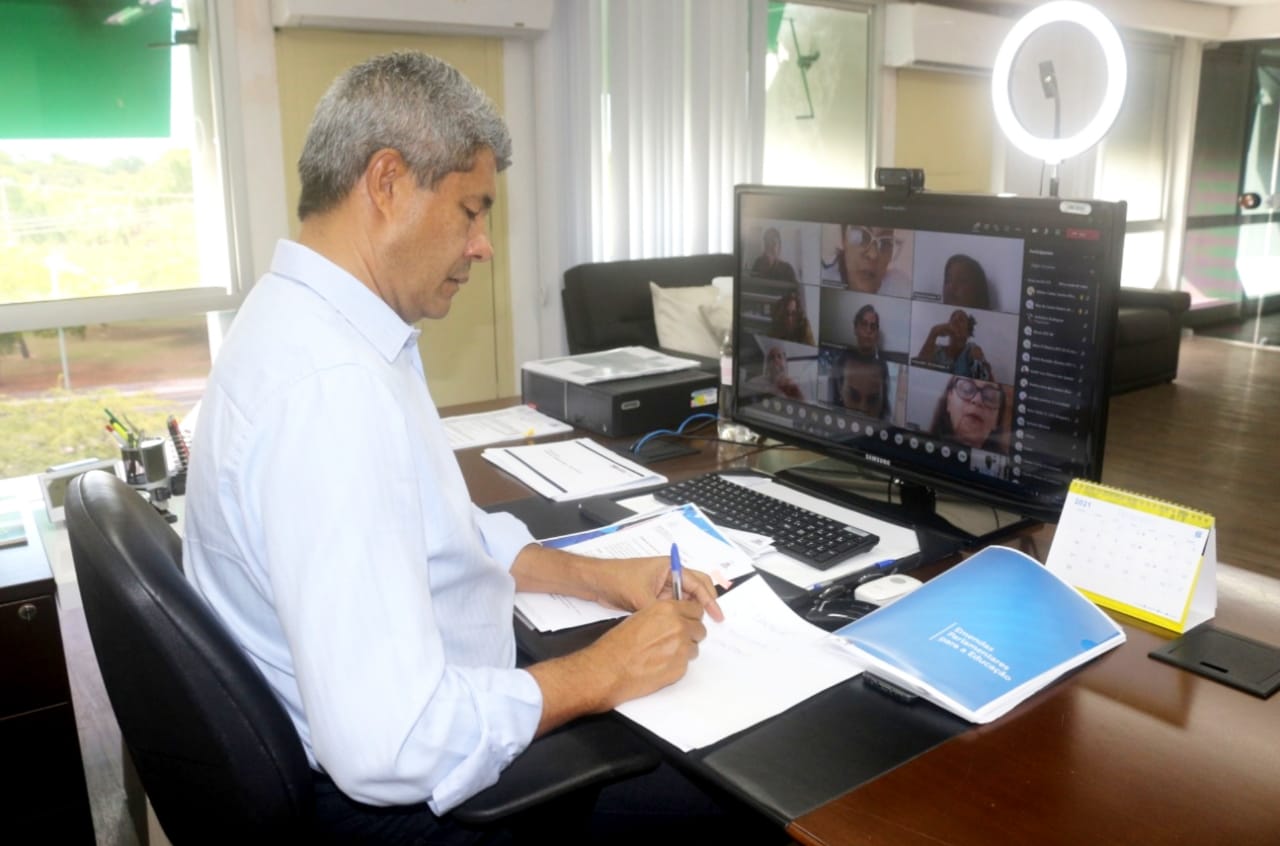 A Secretaria da Educação do Estado (SEC) promoveu, neste sábado (20), um encontro virtual com os dirigentes dos 27 Núcleos Territoriais de Educação (NTE). A agenda faz parte da série de atividades que vêm sendo realizadas pelo órgão de planejamento para o início das aulas. A reunião foi mediada pelo secretário da Educação do Estado, Jerônimo Rodrigues.