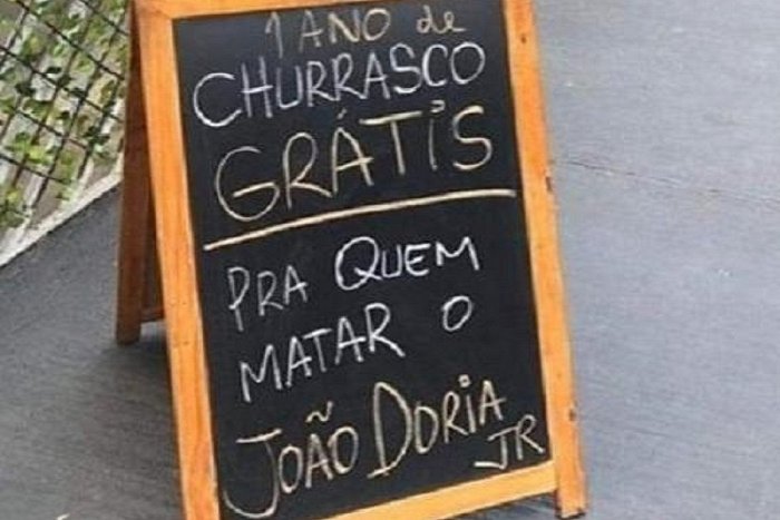 Um comerciante de 40 anos foi detido na quinta-feira (4) após colocar uma placa na frente de seu restaurante prometendo “um ano de churrasco grátis pra quem matar João Dória”, governador de São Paulo. O estabelecimento fica localizado na capital paulista.