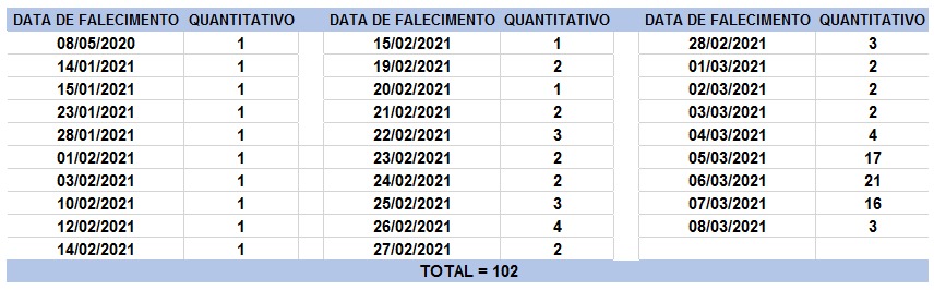 A existência de registros tardios e/ou acúmulo de casos deve-se a sobrecarga das equipes de investigação, pois há doenças de notificação compulsória para além da Covid-19. Outro motivo é o aprofundamento das investigações epidemiológicas por parte das vigilâncias municipais e estadual a fim de evitar distorções ou equívocos, como desconsiderar a causa do óbito um traumatismo craniano ou um câncer em estágio terminal, ainda que a pessoa esteja infectada pelo coronavírus.