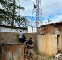 A PM empreendeu diligências em busca do suspeito, quando foram informados sobre um jovem que estava no alto de uma torre que fica localizada na Av. Ronan Mota, próximo ao Colégio Estadual Nossa Senhora da Conceição, no centro da cidade, tentando se suicidar.