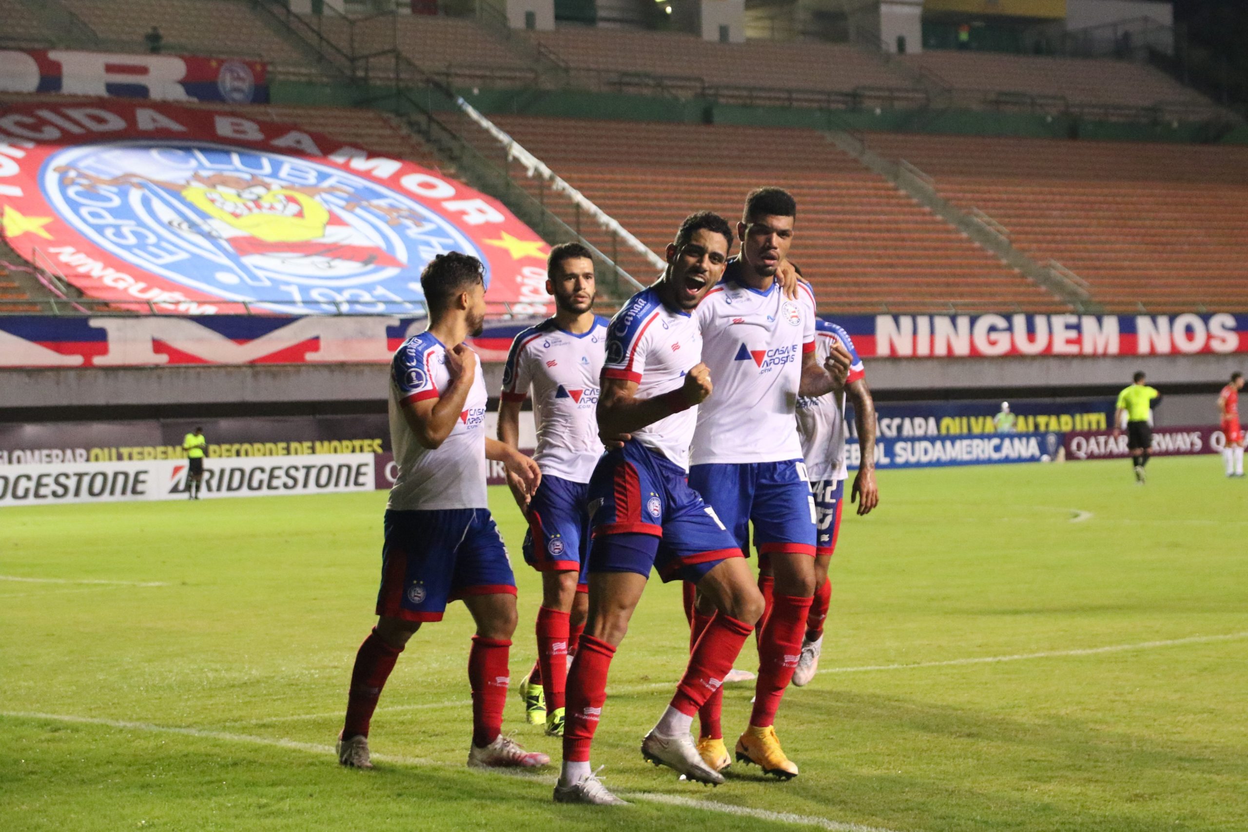 O Bahia não passou sufoco na noite desta terça-feira. No estádio de Pituaçu, o Tricolor dominou a partida contra o Guabirá-BOL, pela segunda rodada da fase de grupos da Copa Sul-Americana, e meteu uma goleada de 5 a 0. Alesson e Juninho abriram o placar no primeiro tempo, em que o Tricolor manteve um ritmo mais lento. Na segunda etapa, abriu-se a porteira: Marcelo Ryan fez dois e Alesson fechou a goleada.