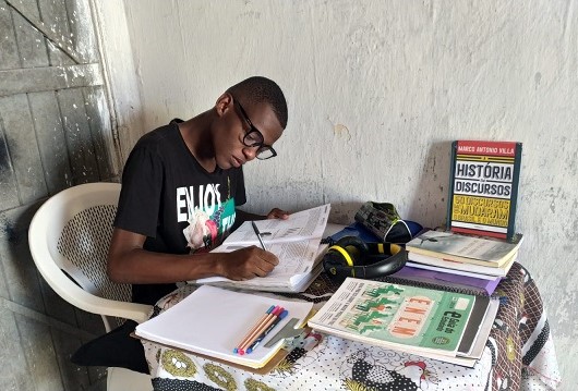 “Uma das coisas que eu faço há dois anos e tem me ajudado bastante é dar reforço às pessoas aqui no bairro, a um preço bem simples. Tinha pessoas que não tinham condições financeiras e eu ministrava o conteúdo e ensinava assim mesmo, pois ensinando, eu estava reforçando o estudo e ajudando o colega que precisava. Eu dava reforço, mas devido ao covid-19 ficou muito complicado se adaptar, porque muitos não tinham internet boa e também não conseguiram fazer a migração do presencial para o EAD, então foi muito complicado. Fiz até um Instagram @negrescored, que é uma forma de divulgar. Eu fiz também um grupo de estudo no WhatsApp com as meninas aqui do bairro, porque eu vi que não tinham um poder aquisitivo de poder pagar um tutor de redação, e todas conseguiram tirar acima de 900, mas de um modo geral é dedicação, esforço e persistência e o maior de tudo Fé. Ter Fé que em algum momento tudo vai acontecer”, destacou o jovem.