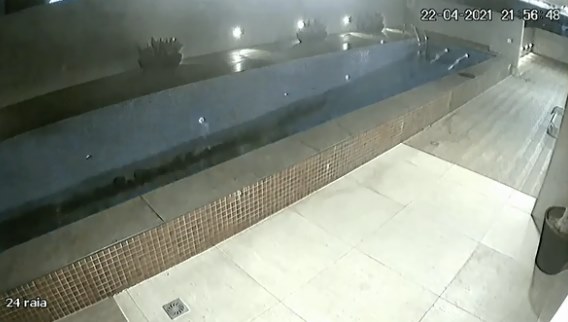 Vídeos de câmeras de segurança mostram o momento em que a piscina de um edifício de luxo desabou sobre a garagem na noite de quinta-feira (22) em Vila Velha, na Grande Vitória-ES.
