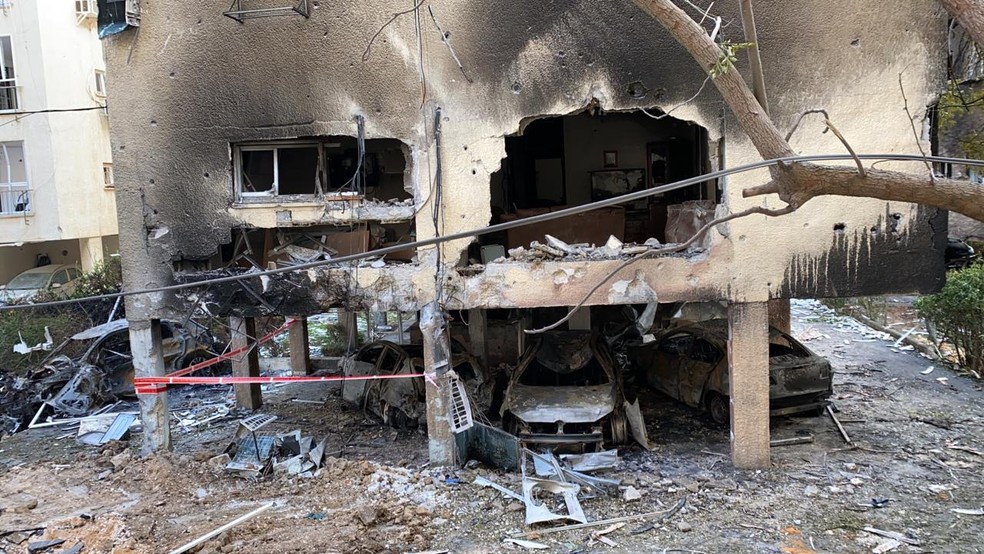 Prédios vizinhos de Higor Vidal ficaram destruídos em Israel — Foto: Arquivo Pessoal