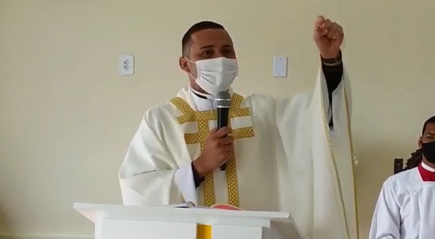 “Aprovando projeto a favor de pessoa que é contra família, a favor de aborto, maconha. […] São filhos do Satanás”, diz o padre, durante uma missa.