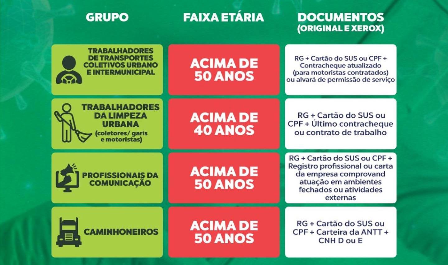 Para este sábado estava previsto apenas a vacinação desses grupos abaixo: