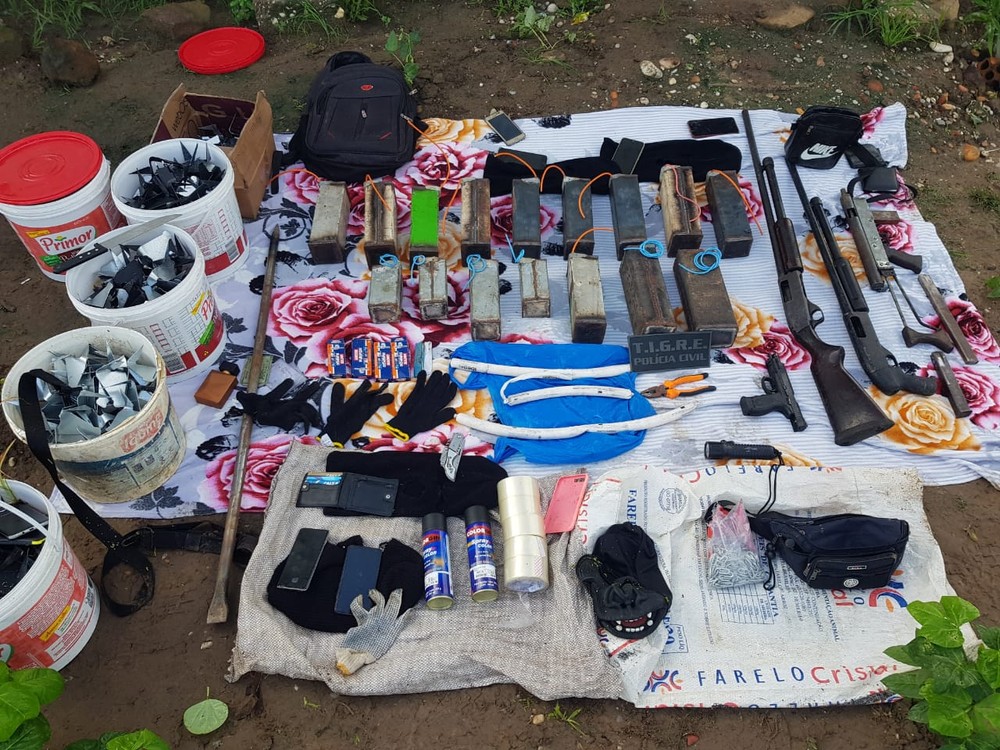 Várias armas de fogo, explosivos e grampos foram apreendidos na ação. O material será levado para a sede da Divisão Especial de Investigação e Capturas (Deic), na Santa Amélia, em Maceió.