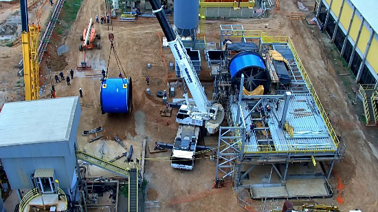 Um marco de construção significativo foi alcançado em 25 de junho com a instalação do primeiro segmento do moinho de bolas, e o projeto geral está com 41% de suas obras concluídas. As atividades de engenharia e aquisição estão 96% concluídas, a construção e reforma da planta 46% concluídas, a reforma do moinho SAG existente está progredindo bem, e o sistema de moagem primária está 75% completo, enquanto o de moagem secundária segue 52% concluído. As fundações e bases de concreto para o novo moinho de bolas já estão instalados, e a instalação do moinho foi iniciada. O circuito de pré-condicionamento, lixiviação e desintoxicação está 46% concluído: as bases de concreto foram concluídas, as estruturas de aço estão sendo pré-montadas e a instalação do tanque em andamento, com quatro tanques em cada dez totalmente erguidos e mais quatro parcialmente erguidos.