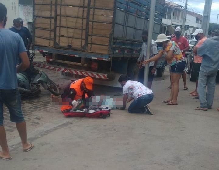 Idoso fica gravemente ferido após colidir moto em fundo de caminhão