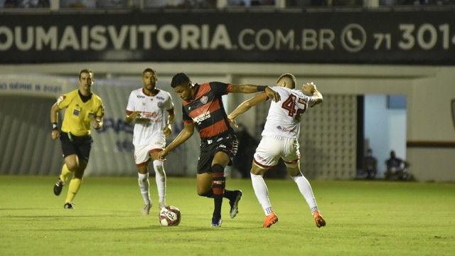Em meio a algumas falhas defensivas, o Vitória foi quem mais criou na primeira etapa, que teve equilíbrio durante boa parte do tempo. O Rubro-Negro encaixou os contra-ataques e poderia ter ido para o intervalo à frente no placar, se David não tivesse perdido a melhor chance do time baiano aos 34 minutos. Roberto também desperdiçou uma boa oportunidade nos minutos iniciais. O Timbu acordou nos últimos 10 minutos e viu Erick driblar Wallace na meia-lua e mandar ao lado do gol. Vinicius ainda cabeceou para fora no finalzinho.