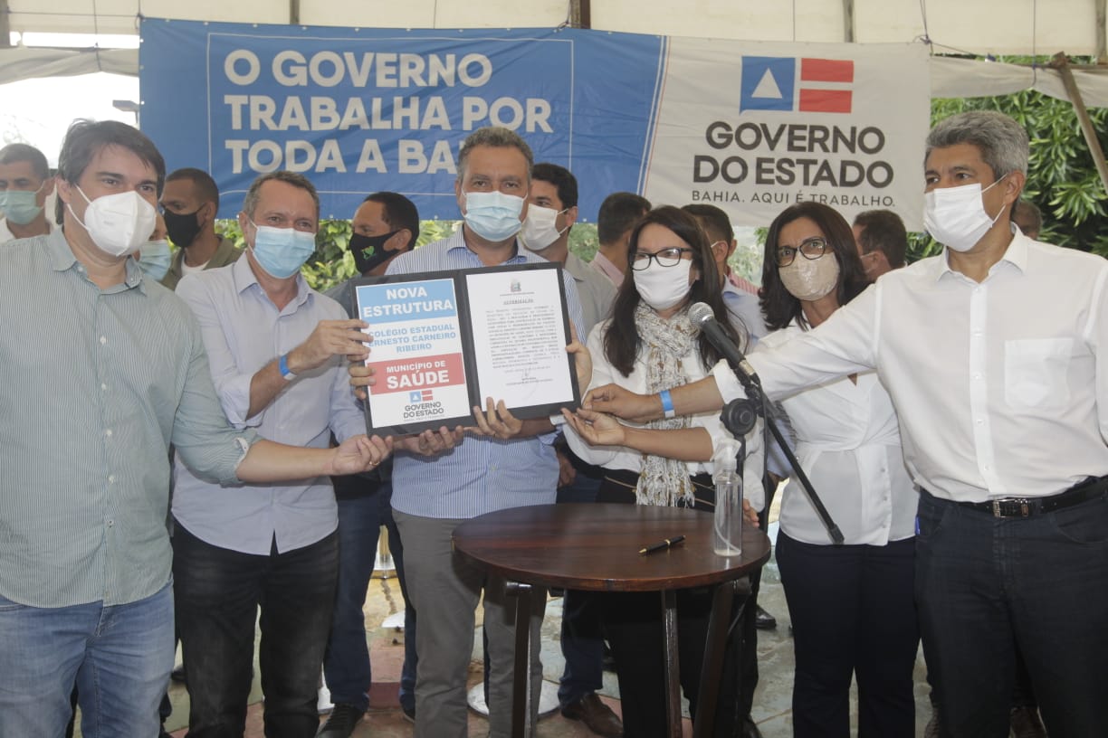 “Nós anunciamos investimentos em infraestrutura, mas também entregamos ônibus escolares, equipamentos e máquinas, e também investimentos em novas unidades escolares, inclusive municipais, onde obras que estão paralisadas há muitos anos possam ser concluídas e entregar creches e escolas do Ensino Fundamental “, afirmou o governador Rui Costa.