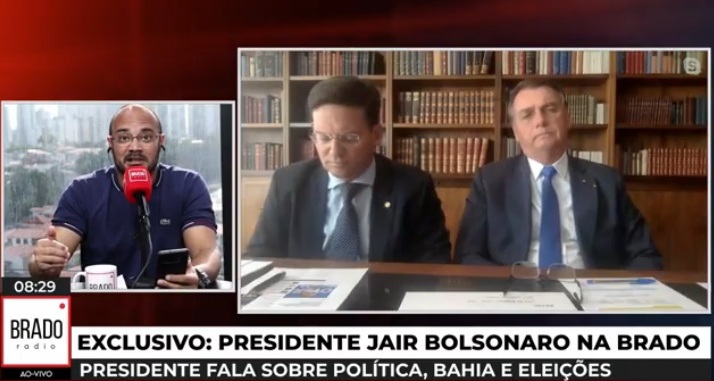 O presidente Jair Bolsonaro (sem partido) participou nesta segunda-feira (9) de uma entrevista gerada pela Rádio Brado, uma emissora online através do site radios.com.br e retransmitido pelas rádios Piquaraçá FM (Monte Santo), Caraíbas (Senhor do Bonfim) e Planalto (Euclides da Cunha), além da Farol de Salvador.