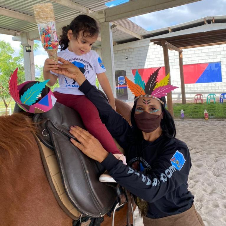 As atividades de equoterapia – realizadas com emprego de cavalos como forma de promover ganhos em níveis físico e psíquico (coordenação motora, tônus muscular, força, equilíbrio, auto-estima, coragem, disciplina e tolerância) – acontecem em espaços ao ar livre nas unidades da PM. A ação é acompanhada por policiais, fisioterapeutas e psicoterapeutas.