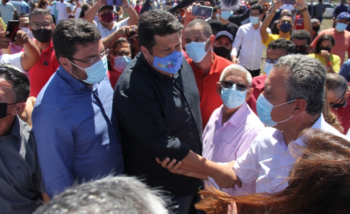 Dr Luciano e Marcinho cumprimentam o governador em Pedra Vermelha | Foto: Raimundo Mascarenhas