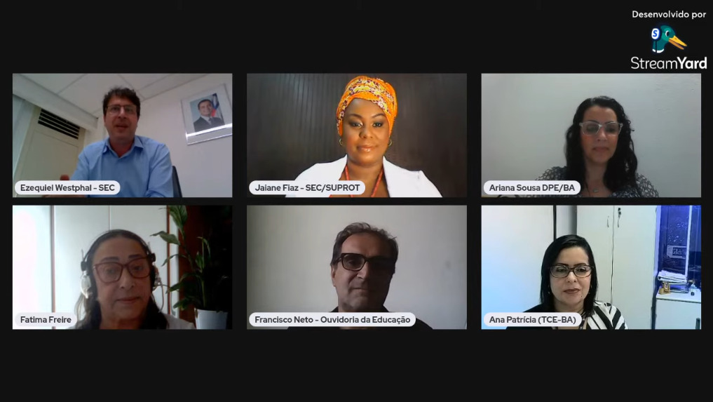 Para a matrícula, os contemplados deverão portar Histórico Escolar (original); Célula de Identidade (original e cópia); Cadastro de Pessoa Física – CPF (original e cópia); e comprovante de residência (original e cópia). Mediado por Jaiane Fiaz, da Superintendência da Educação Profissional e Tecnológica, o processo seletivo contou com a participação de representantes da Ouvidoria da Educação, Francisco Neto; da Defensoria Pública, Ariana Souza; do Tribunal de Contas do Estado da Bahia, Ana Patrícia Crisóstomo Pereira; do Fórum Estadual da Educação da Bahia, Fátima Freire; e da Procuradoria Geral do Estado, Marcela Capachi.