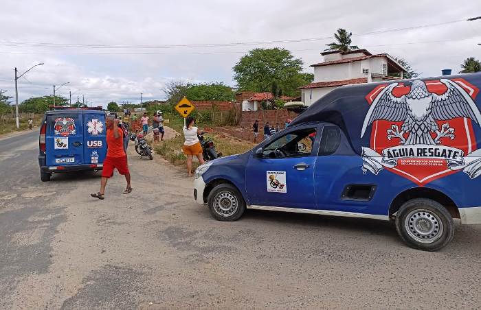 O casal José Hamilton dos Santos e Sandreli Lima da Silva foi socorrido pelo Águia e Resgate depois de se envolver em um acidente no cruzamento da Rua Antônio Felix com o acesso ao Povoado Laginha, no bairro Olhos D’água, perímetro urbano de Conceição do Coité, por volta das 13h deste sábado (16).