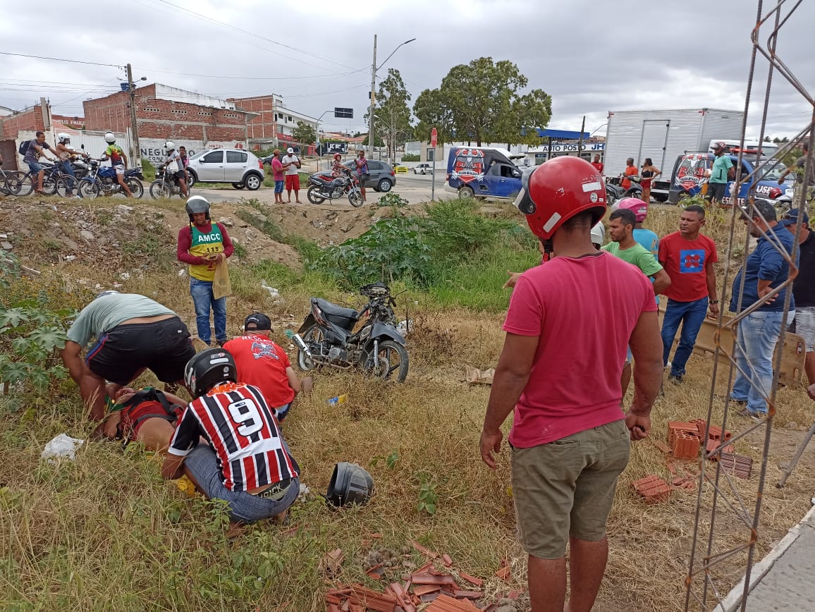 Eles estavam a bordo de uma motocicleta quando foi atingido por um carro que não teve os dados anotados e após perder o controle da direção caiu próximo a uma boca de lobo entre a BA e a Rua Antônio Felix.