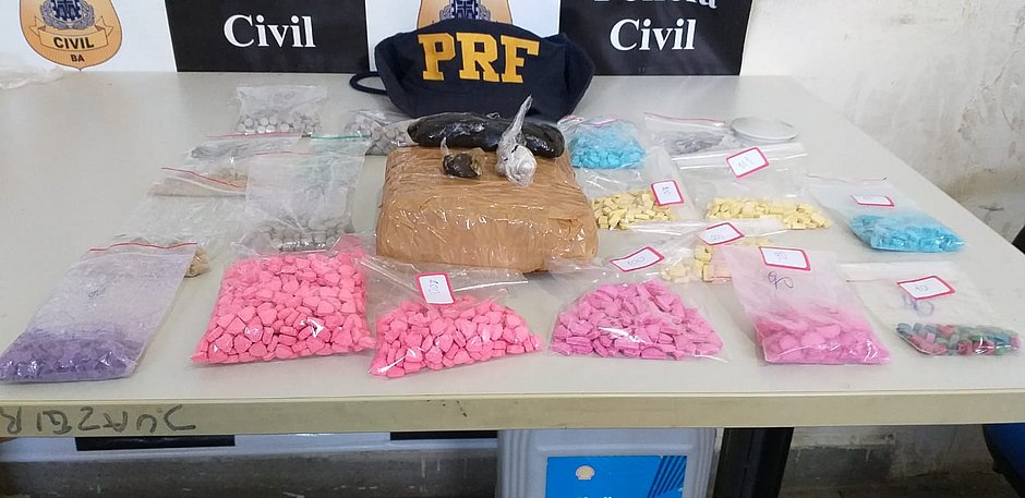 Uma quantidade de 2.331 comprimidos de ecstasy, um tablete de maconha e outro de haxixe foram apreendidos na manhã desta quinta-feira (7) escondidos dentro de um Fiat Bravo, na BR-407, trecho de Juazeiro, no norte da Bahia. Um casal foi preso.