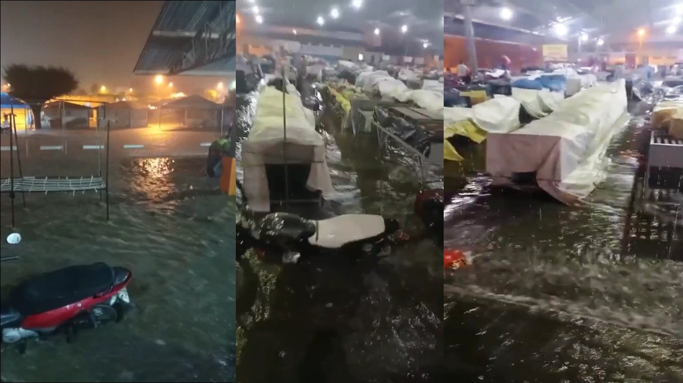 Veja o vídeo de um internauta no momento do temporal no centro de abastecimento