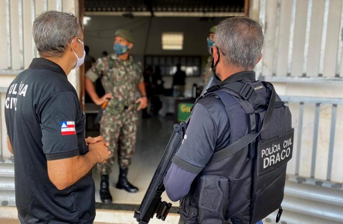 Participam das ações, policiais da Coordenação de Repressão a Crimes Contra Instituições Financeiras do Draco, da Coordenação de Fiscalização de Produtos Controlados (CFPC), 19ª Coordenadoria Regional de Polícia do Interior (Coorpin/Senhor do Bonfim), da Coordenação de Operações Especiais (COE), além de uma equipe do Departamento de Polícia Técnica (DPT) e militares do 35º Batalhão de Infantaria e do Comando da 6ª Região Militar do Exército Brasileiro.